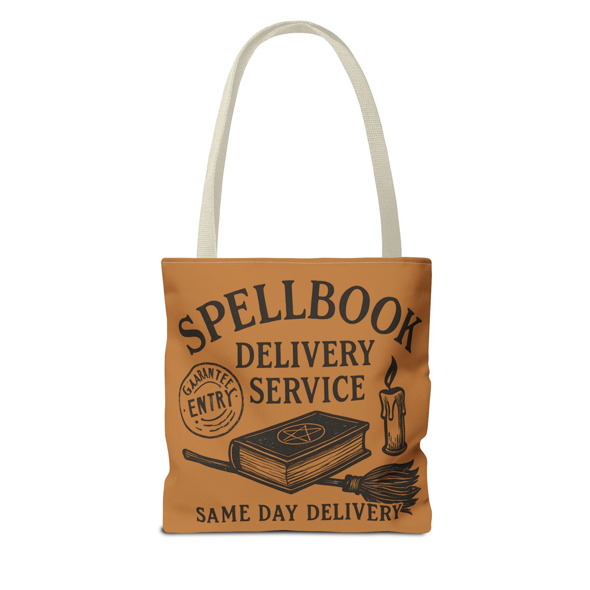 Introducing our enchanting Tote Bag, perfect for those who seek a unique blend of style and functionality. With its whimsical 'Spellbook Delivery Service' design, this tote adds a touch of magic to your daily routine. It's not just a bag; it's an expression of personality, making it ideal for book lovers, witches, or anyone enchanted by the mystical. Crafted from durable polyester, it retains its shape and is ready for everyday adventures, whether it’s a trip to the local market, a casual day out, or a fun gathering with friends. This tote is a fantastic gift for holidays like Halloween, birthdays, or any celebration that embraces the extraordinary!